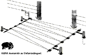 Mellan två strömförande glasfiberstolpar spänner man en strömförande tråd.