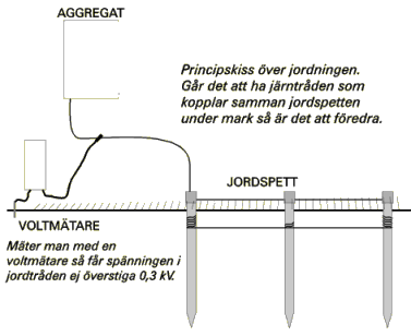När man skall jorda aggregatet så finns det speciella jordspett. De är vanligen en meter