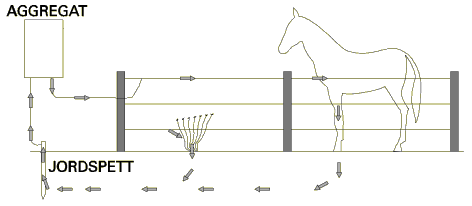 kontakt med tråden så rusar strömmen genom djuret ner i backen tillbaka till aggregatet